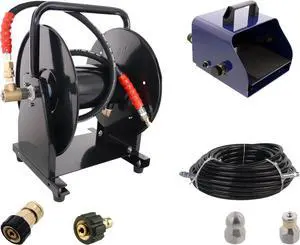 Scheiffer Sewer Jetting Kit - Foot Control Valve Hose Reel 1/8" x 100' Sewer Jetting Hose Button Nose and Rotating Nozzles