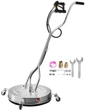 VEVOR 24" Pressure Washer Surface Cleaner, Stainless Steel Pressure Washer Attachments with 4 Wheels, 4000 Max PSI, 3/8 Quick Connector, 2 Spray Nozzles, Dual Handle, for Concrete, Patio, Sidewalk