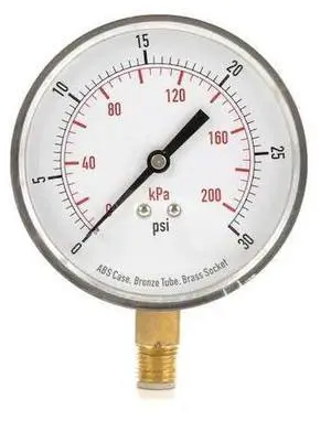 ZORO SELECT 4FLX6 Commercial Pressure Gauge, 0 to 30 psi, 3 1/2 in Dial, 1/4 in