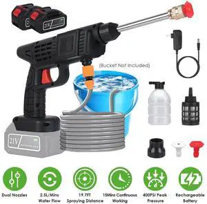 VEVOR Cordless Pressure Washer, 580-PSI 1.1 GPM Portable Power Cleaner, Handheld High-Pressure Car Washer Gun with 4.0Ah Battery, Charger, 6-in-1 Nozzle, for Home/Floor Cleaning & Watering
