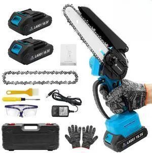 6-Inch Chain Saw, 2 Pack 2000mAh Batteries, Seniors FriendlyPortable Handheld Chainsaw, Mini Chainsaw Cordless for Wood Cutting Tree Trimming DIY Projects Gardening Camping