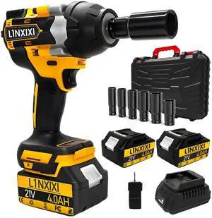 1/2 Cordless Impact Wrench, 1/2 Inch Impact Drive with Brushless Motor, 1000N.m(740Ft-Lbs), 3300PRM, Electric Impact Wrenches with Battery and Charger, 6 Sockets
