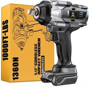 Cordless Impact Wrench 1/2 inch Compatible with Dewalt Battery, 1000FT-LBS (1360N.m) Brushless Electric Impact Gun Includes LED Work Light, 2100RPM High Torque Impact Driver, Bare Tool Only