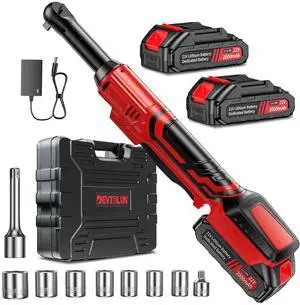 21V Electric Ratchet Wrench Set,60FT-LBS (80N.m) Extended Cordless Ratchet Wrench with 2x 2.0Ah Battery,3/8" 400 RPM Variable Speed Power Ratchet Driver Set with 7 Sockets,1/4 Adaptor, 3"Extension Bar