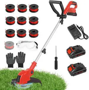 21V String Trimmer Cordless with 2x3.0Ah Battery and Charger, 12 Inch Battery Power Weed Eater String, Electric Weed Wacker, 2 In 1 Trimmer & Edger Lawn Tool Grass Cutter with 8 Lines for Garden, Yard