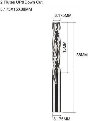 1 pieces 3.175X15X38MM Two Flutes UP And DOWN Cut Spiral Carbide Mill Cutters for Compression Wood PVC End Mill Cutter Bits