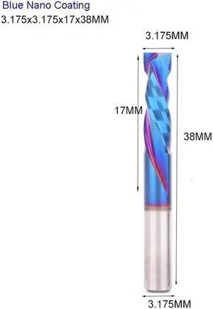 5 pieces 3.175X17X38 Blue Nano Two Flutes UP And DOWN Cut Spiral Carbide Mill Cutters for Compression Wood PVC End Mill Cutter Bits