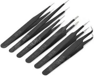 WLXY WL-ESD6PC Durable Steel Tweezers Set - Black (6 PCS)