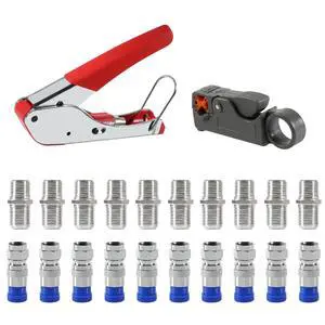 Zhushan Coaxial Compression Tool Kit,Coax Cable Crimper Set with 20 PCS F Compression Connectors, Adjustable RG6 RG59 RG11 75-5 75-7 Coaxial Cable Stripper