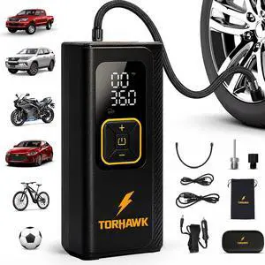 Tire Inflator Portable Air Compressor, Fast Inflation & High Battery Capacity, 150PSI Cordless Air Pump for Car Tires, SUV, Motorcycle, Bike, Ball with Digital Pressure Gauge & LED Light
