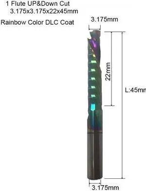 5 pieces 3.175X22 DLC One Flute UP DOWN Cut Spiral Carbide Mill Tool Cutters for Compression Wood End Mill Cutter Bits