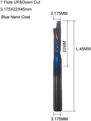 5 pieces 3.175X22 Blue Nano One Flute UP DOWN Cut Spiral Carbide Mill Tool Cutters for Compression Wood End Mill Cutter Bits