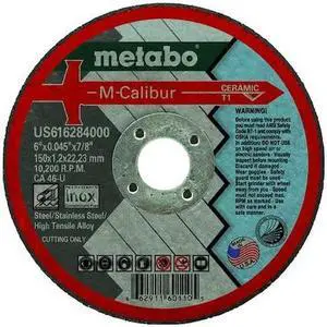METABO US616284000 Abrasive Cut-Off Wheel, Type 1, 6 in Dia, 0.045 in Thick,