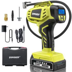 Tire Inflator Portable Air Compressor, 20V Cordless Car Tire Pump, Rechargeable Battery Powered Air Compressor w/12V DC Adapter, Digital Pressure Gauge