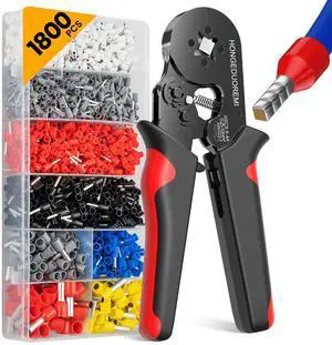 Ferrule Crimping Tool Kit,Wire Ferrule Kit Crimper Connectors4 corners Self-adjustable AWG23-7 gauge 1800PCS Ferrules Electrical TerminalCrimpers Tools Pin Terminals Ratchet Pliers for Audio,Car,DIY