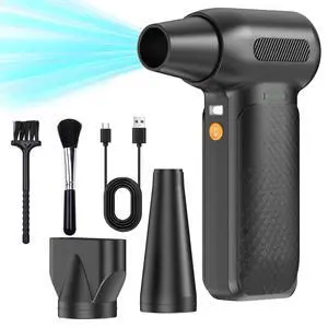 Features: 1.Adjustable 3 speed modes : The air duster is equipped with an upgraded 51000 RPM motor, which provides airflow for deep cleaning. Press 3 seconds and hold the power on, click the button, you can switch 3 airflow modes (33000 RPM, 38000 RPM, 51000 RPM) for different equipment cleaning, so that dust has nowhere to stay