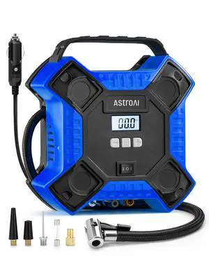 Air Compressor Tire Inflator Portable Air Pump for Car Tires, 12V DC Integrated Metal Structure Tire Pump 160PSI with LED Light for Cars, Bicycles, Motorcycles, and Other Inflatables(Blue)