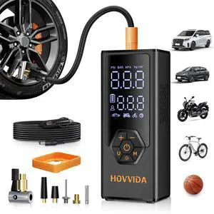 Tire Inflator Portable Air Compressor, 150 PSI Fast Inflation Cordless Air Pump with LED Light, Auto Shut-Off, Rechargeable Battery for Car, Motorcycle, Bike, and Sports Balls