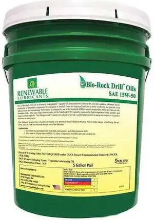 RENEWABLE LUBRICANTS 83024 Biodegradable Rock Drill Oil, 15W-50, 5 gal.