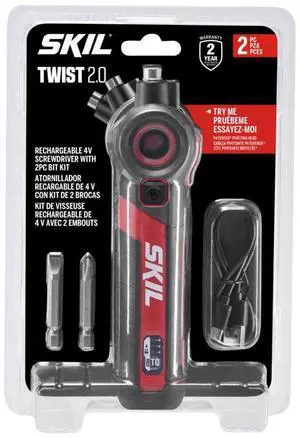 Twist 2.0 Rechargeable 4V Screwdriver with Pivoting Head, Torque Setting, USB-C Charging Cable & 2PC Bit Set-SD5619-01