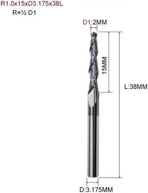 1piece HRC55 Tapered Ball Nose End Mill Tungsten Solid Carbide Coated Tapered Cone Cnc Milling Cutter (R1.0x15xD3.175x38L