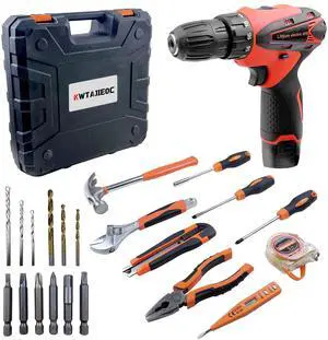 33 Picce Orange Tool Kit with 12V Cordless Drill, Tool Box with Drill, Hand Drill Set for Men Women, Home Tool Kits for House Repair, Handyman, DIY