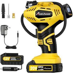 Tire Inflator Portable Air Compressor, 20V Cordless Car Pump w/Rechargeable Li-ion Battery, 12V Car Power Adapter, Digital Pressure Gauge, 150PSI Tire Compressor for Many Inflatables