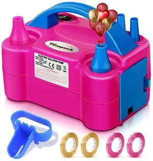 Electric Air Balloon Pump, 110V 600W Rose Red Portable Dual Nozzle Inflator/Blower for Party Decoration