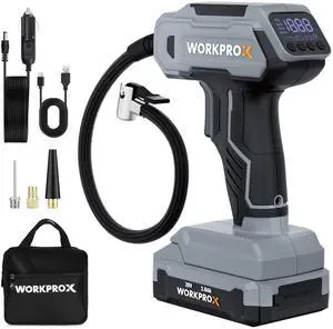 Tire Inflator Portable Air Compressor, 20V Cordless Car Pump w/Rechargeable Li-ion Battery, 12V Car Power Adapter, Digital Pressure Gauge, 150PSI Tire Compressor for Many Inflatables
