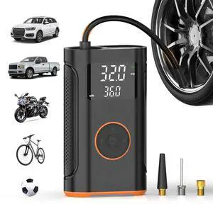 Tire Inflator Portable Air Compressor, Cordless & 12V DC Air Inflator for Car Bikes MotorcycleTires Balls with Auto Shut-Off, Digital Pressure Gauge, Compact Emergency Pump