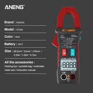 ANENG ST206 Digital Multimeter Clamp Meter 6000 Counts True RMS Amp DC/AC Current Clamp Measure Dc Amperimetro Tester Voltmeter - Red