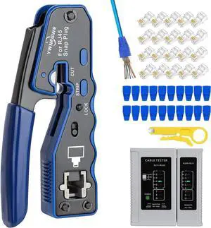 RJ45 Crimp Tool Kit Pass Thru Ethernet Crimper for Cat5e Cat6 Cat6a 8P8C Modular Connectors, All-in-One Cat6 Crimping Tool and Tester(9V Battery Not Included)