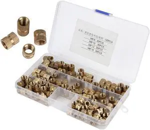150Pcs M5 Brass Cylinder Knurled Nuts Threaded Insert Nuts Embedded Nuts Assortment Kit Fastener Hardware