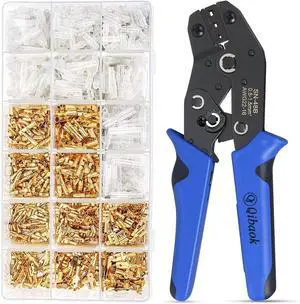 Wire Terminal Crimping Tool Kit, Qibaok Ratcheting Wire Crimper AWG 22-16(0.5-1.5mm²) with 500PCS Female Male Spade Connectors & Bullet Connectors Terminals