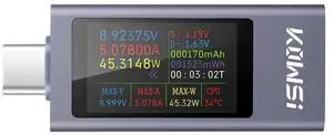 Type-C Voltage Current Power Capacity, Working Time Ammeter Voltmeter USB Cable Charger Detector USB-C Tester 4-30V 0-6.5A Digital Multimeter