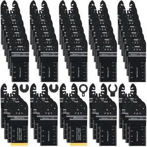 55PCS Oscillating Saw Blades, Professional Universal Titanium Multitool Blades for Wood Plastics Metal, Quick Release Multi Tool Kits Fit Dewalt Ryobi Milwaukee Rockwell Fein Makita