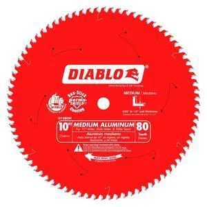 Saw Blade for Medium Aluminum - 10" Diameter, 80 TCG Teeth, 5/8" Arbor, .094" Kerf, -5° Hook Angle, .071" Plate, 6000 Max RPM - D1080N