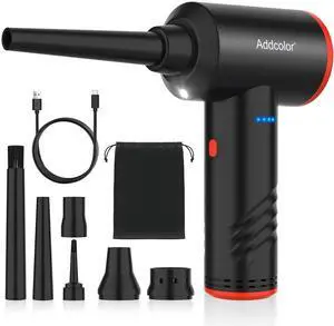 Compressed Air Duster 6000mAh Battery - Electric Air Duster Addcolor AD-38 Keyboard Cleaner for Office-3 Adjustable Wind Speeds with LED Light, Cordless & Reusable Canned Air Duster for Computers