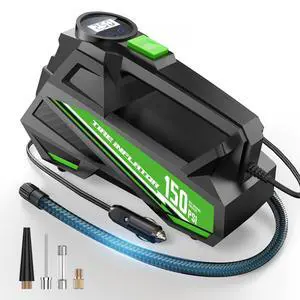 Tire Inflator Portable Air Compressor - 150 PSI Fast Inflation Rechargeable Battery & 12V DC Adapter Powered Air Pump for Car Bike Motorcycle Tires Balls with LCD Display, LED Light, Pressure Gauge