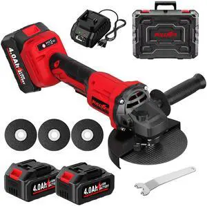 4-1/2" Angle Grinder Cordless, 12000 RPM Brushless Angle Grinder Tool, Power Angle Grinders with 2 * 4.0Ah Batteries & 3 Cutting Wheels, Electric Metal Grinder for Cutting, Grinding, Polishing (Red)