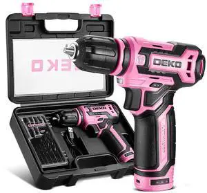 Cordless DrillDEKOPRO 12V Power Drill Set with Pink 800RPM Electric Drills with Tool Set Gift Box, Pink Drill Set for Women