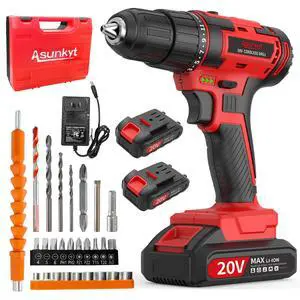 Cordless Drill, 20V MAX Power Drill Set with 2 Batteries & Charger, 3/8 Inch Keyless Chuck, Variable Speed, 25+1 Position and 56PCS Bits/Screws, Power Tools for Home Projects
