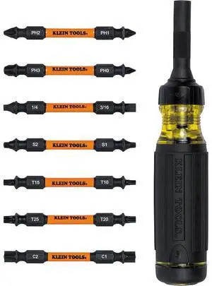 Klein Tools 32315HD 15-in-1 Multi-Bit Ratcheting Screwdriver, Impact-Rated, 7 Double-Ended ProFlex Torsion Zone Tips, 1/4-Inch Nut Driver, 8-Piece