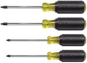 85664 Screwdriver Set, Made in USA, Square Recess with Color Coded Handles and Heat Treated, Chrome Plated Shafts, 4-Piece