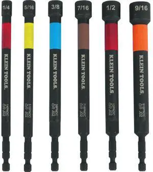32930 SAE Magnetic Impact Nut Setter Set, 6-Piece Color Coded Power Nut Driver with Extended Reach, 6 SAE Sizes