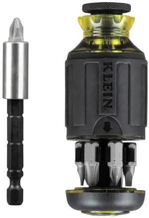 32308 Multi-bit Stubby Screwdriver, Impact Rated 8-in-1 Adjustable Magnetic Tool with Phillips, Slotted, Square and Nut Driver