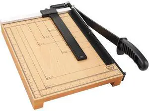 KEHIPI Heavy Duty Guillotine Paper Cutter & Paper Trimmer, 12" Cut Length, Automatic Clamp, Adjustable Guide, Wood Base with millimeters/inches Gridlines