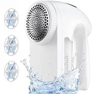 IPX6 Waterproof Washable Electric Fabric Shaver and Lint Remover, Rechargeable Sweater Defuzzer with 3 Free Extra Blades, Quickly and Effectively Remove Fluff, Fuzz, Bobbles for Clothes, White