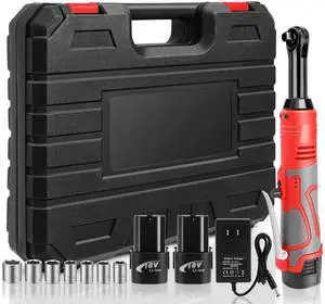 KEHIPI Cordless Electric Ratchet Wrench Set, 3/8" 12V Power Ratchet Driver, 2-Pack Lithium-Ion Batteries, 7 Sockets and Charger