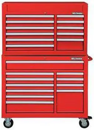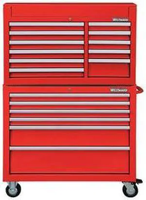 WESTWARD 7CX90 42"W Tool Chest and Cabinet Combination 17 Drawers, Red, 66-5/8"H